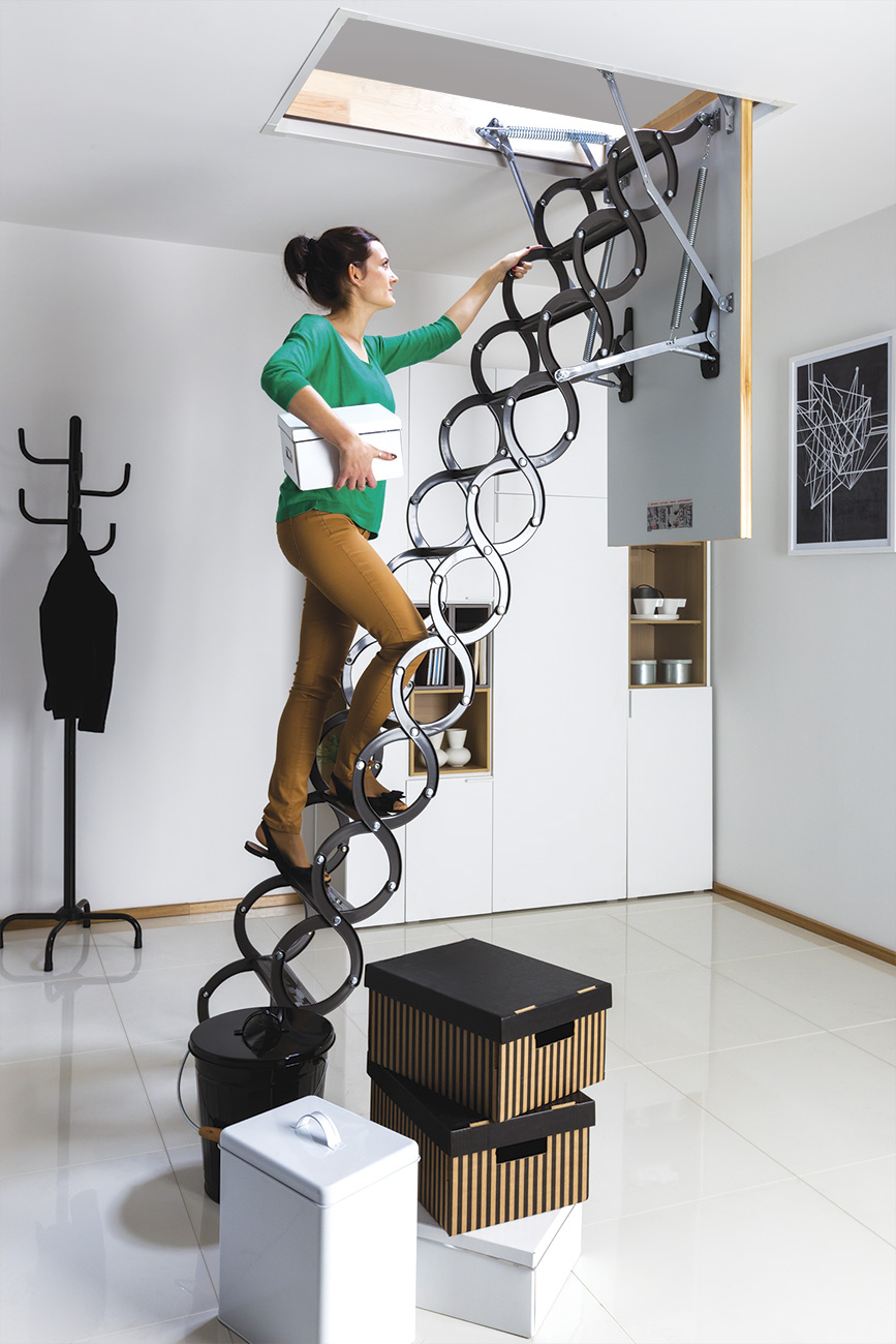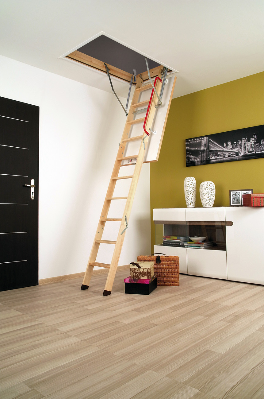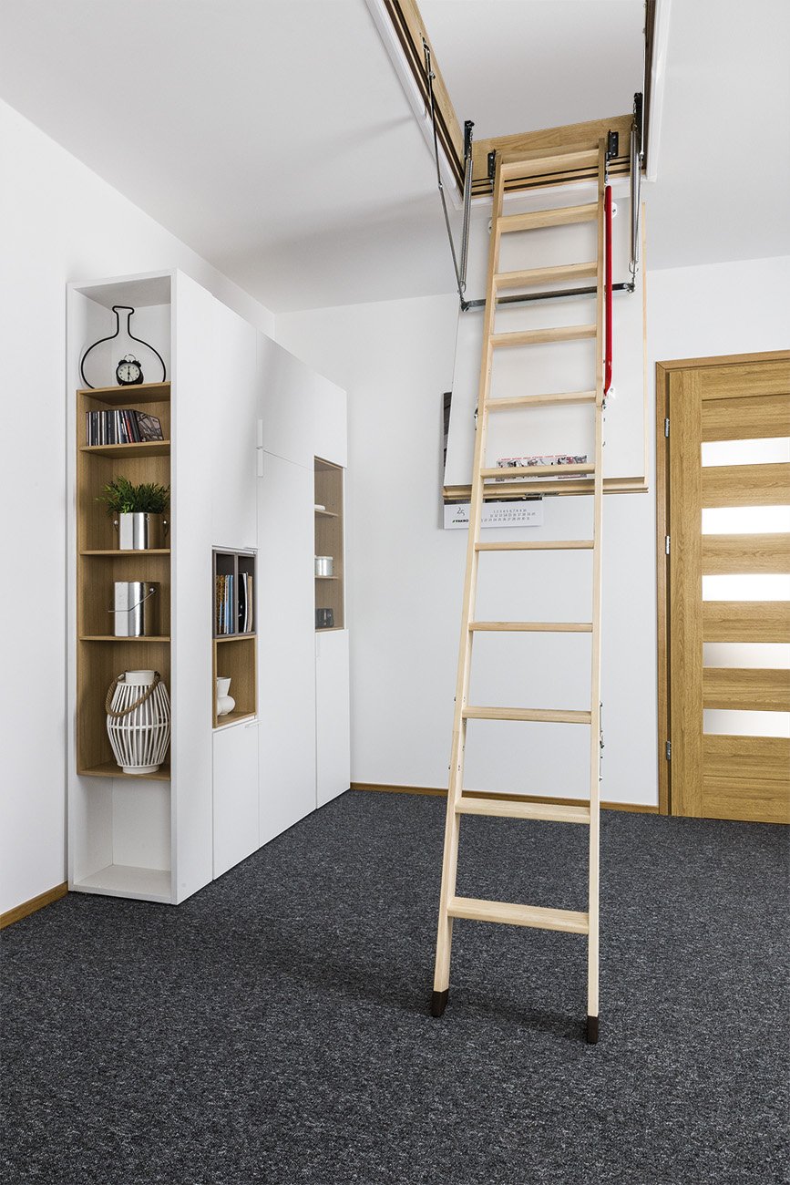 Pokud chceme dobu montáže skládacích půdních schodů s dřevěným žebříkem zkrátit na minimum, volíme schody LWZ Plus, jež jsou vybaveny systémem rychlé montáže. Dalším komfortním výrobkem je model LWL Lux s dodatečným madlem a mechanismem usnadňujícím rozložení a složení žebříku.