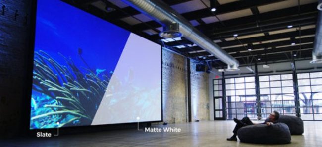 Tým vývojářů Screen Innovations přišel s obří projekční plochou, která vyniká svou celistvostí, neutralitou barev, mikro-texturou a v neposlední řadě i schopností potlačit ambientní světlo. Projekční plátno Slate XL může být až 4,8 m vysoké a 49,9 m široké, a to bez jakéhokoliv švu. I při této velikosti si ovšem zachovává veškerou obrazovou kvalitu pláten Slate.