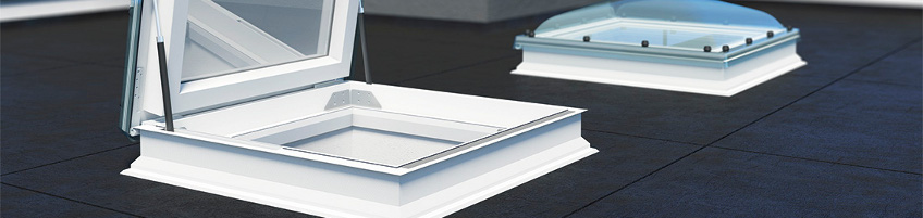 Okna do plochých střech DSF a DSC jsou určena pro odvod kouře a také tepla vznikajícího během požáru uvnitř budovy, čímž umožňují rychlou evakuaci osob. Při každodenním větrání se křídlo zvedá do výšky 23 cm, zatímco v případě požáru se křídlo zvedne až do výšky 50 cm. Prvky zvedacího mechanismu křídla nejsou zevnitř místnosti po zavření okna vůbec vidět. Rozsah montáže ve střechách se sklonem je 0-15°.